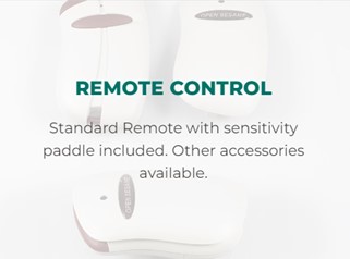 Each Open Sesame door system comes standard with a remote control that can be either handheld or easily mounted on a wheelchair. This high-powered remote device can activate the door system from anywhere in the home and can be activated with fingers, palm, the side of the hand and more.